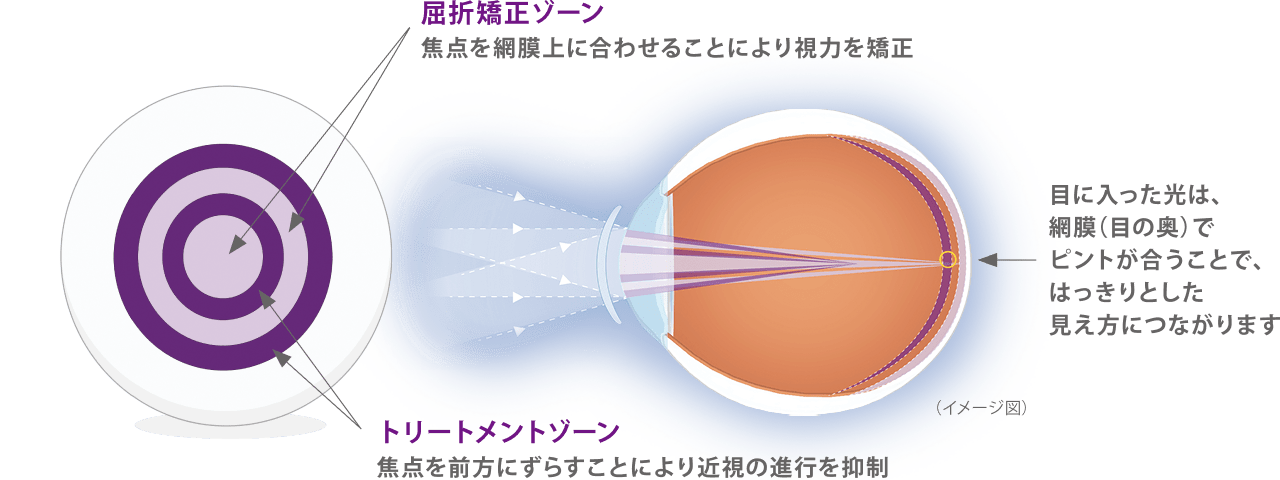 この設計により、近視の視力補正と進行抑制の2つの機能があります。
